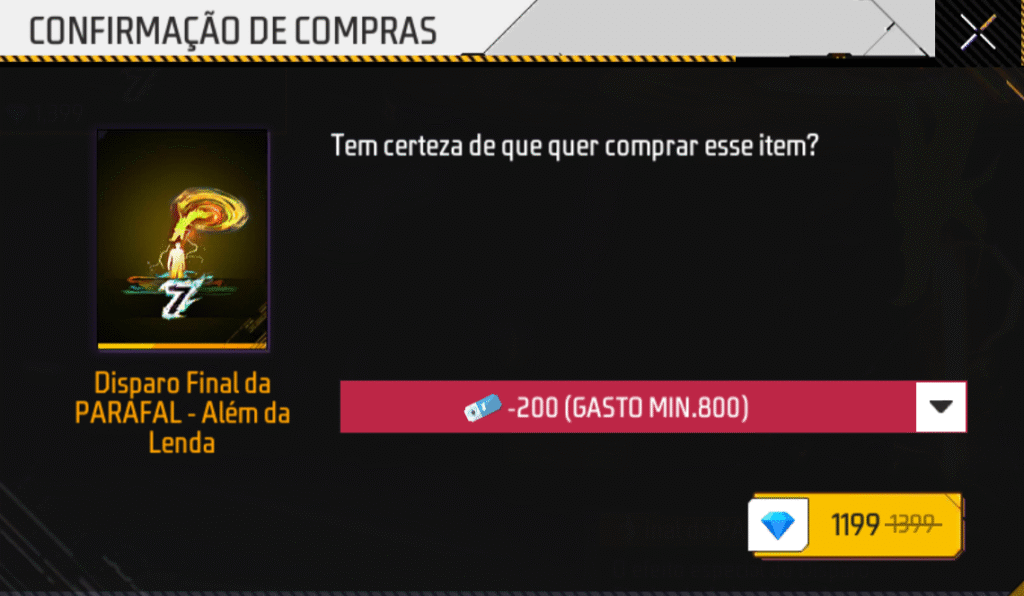 Além de poder ser conquistada no Escolha Royale, o Disparo Final da Parafal – Além da Lenda também está disponível na Loja do Free Fire. O item pode ser adquirido por 1.399 diamantes, com a possibilidade de desconto de até 200 diamantes para quem possui cupom de desconto ativo.